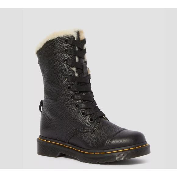 Dr. Martens Aimilita Faux Fur Lined Leather High Boots Black Milled Nappa Size 7