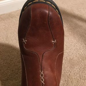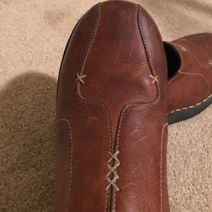 Only worn a few times. US size 9 men's, UK size 8 men's, Euro size 42. Awesome cognac leather with cream stitching on shoe body and trademark yellow stitching on sole
