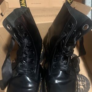 Size 9 Dr. Martens. Molly Black. These are platform and Patent Leather. I bought them to wear to work, but as my first pair of Dr. Martens ever, this style was way too much for my short little legs. The only thing wrong with them is they have been sitting lonely in a box in the closet.