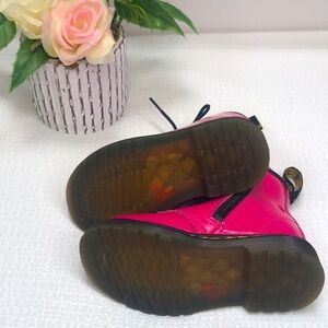 Dr. Marten AirWair with Bouncing Soles childrens boots, hot pink with black laces, side zippers for easy on and off, in good preowned condition, a few scuffs - see pictures. Super cute with lots of wear left.
