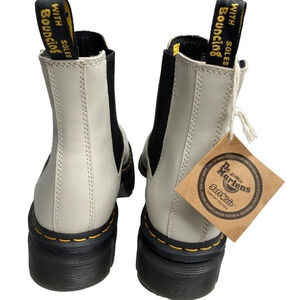 Features: A towering platform. With everyday wearability. These newly-evolved Chelsea boots pack all the height of our renowned Quad platform into a cutting-edge lightweight construction. Set on an innovative two-part sole — a lightweight EVA midsole and PVC outsole with rugged deep cleats — they bring less weight and more attitude. DM's at full volume. The boots are marked with all our signature DNA, including an amped-up edition of our unmistakable DMS tread pattern, as well as yellow welt stitching and a scripted AirWair heel loop.