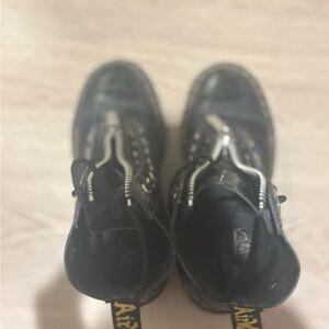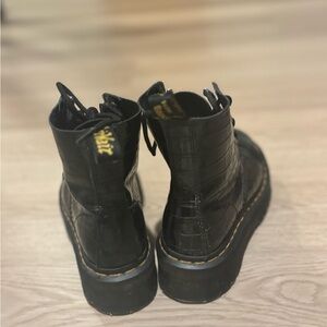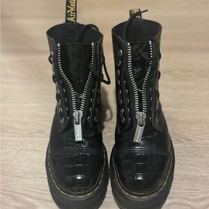 Stylish black boots with croc embossing. Features robust laces and zipper. Perfect for edgy style.