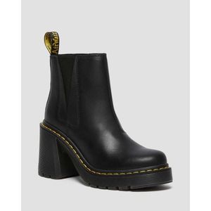 Stylish black heeled boots. Iconic yellow stitching. Durable and trendy.