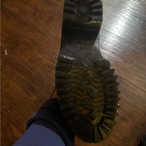 Classic black lace-up boots. Durable leather. Iconic yellow stitching.