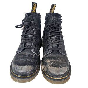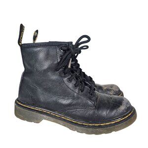 Dr. Martens Black Leather Lace-Up Kids Boots Distressed Condition #1460 J Size 2