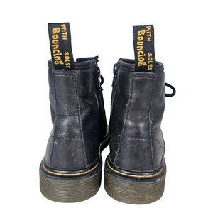 Tags: kids black boots, distressed leather boots, Dr. Martens kids, lace-up boots, side zipper boots, unisex kids shoes, durable kids boots, black Doc Martens, 1460 J boots, iconic boots for kids, black leather shoes, kids size 2 boots, casual kids boots