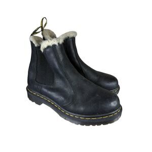 Dr. Martens Black Leather Shearling Lined Chelsea Boots Size 7 Women