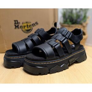 Dr. Martens Black Mattison 3 Strap Athena Leather Platform Sandals UK 7 NIB