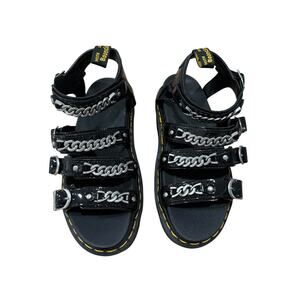 Dr. Martens Blaire II 2 Chain Patent Leather Platform Sandal 39 L 8 Black