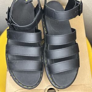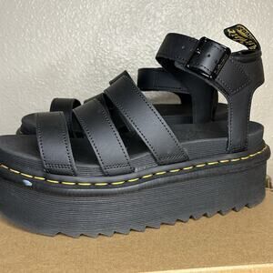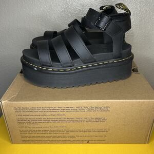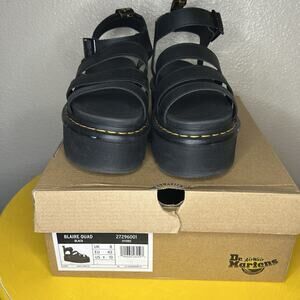 Dr. Martens Blaire Quad Platform Black Hydro Leather Sandals Women’s size 10