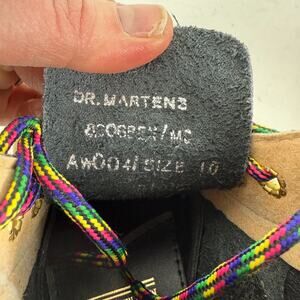Made in England. These Dr. Martens Boots for kids in size 10 feature a stylish black patent leather construction with a lace-up closure and round toe shape. The boots have a 2-inch platform height and a flat heel, making them comfortable for all-day wear. With a combat style and ankle shaft, these boots are suitable for various occasions such as travel, casual outings, or workwear. The rubber outsole provides traction, while the cushioned and adjustable features offer additional comfort for outdoor activities in winter, fall, or spring.