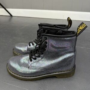 Dr. Martens Boots Womens Size 5 Black Iridescent Glitter Lace Up Side Zip Combat