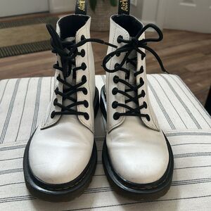 Dr. Martens Luana Boots. Color - white. Women's size 7. These airwalk Luana boots are the 7 eyelet style made with Dr. Marten's smooth leather and crafted into an everyday fashion boot that gives off an iconic Dr. Marten fashion look. There are a few small scuffs, pictured. Style AW004. It is in preowned condition with minimal signs of wear. See pictures for details.