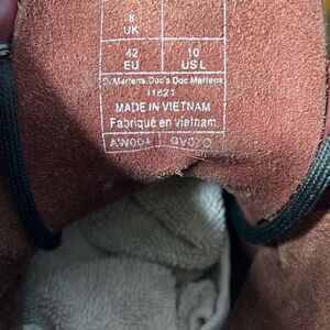 These are custom Dr Martens. Please see the mountains etched on the heels and the brass spikes on the right boot. The left boot has holes (which you have to look to see) but no accessories on the left. I just conditioned them with Wonder Balsam and will add another coat as they needed conditioning. Super cool color. Pull tabs intact. Size 10. Hip.