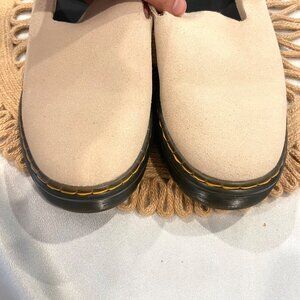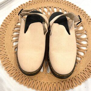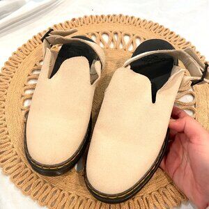 These are gently used Dr. Martens Carlson Slingback Mules in Warm Sand Eh Suede Size W7/ M6. In excellent condition. Minimal wear. See all pics for condition.