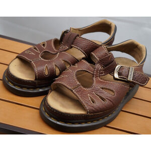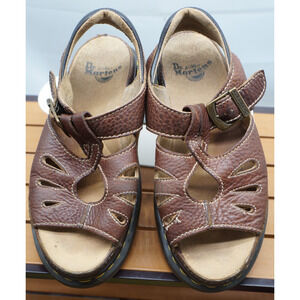 Dr Martens Castillo Sandals Women's 9 41 Brown Leather Platform Teardrop Cutout