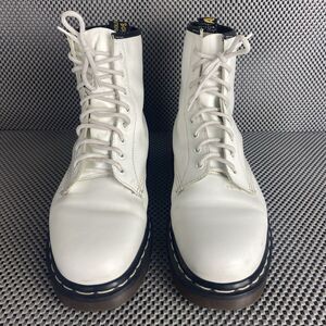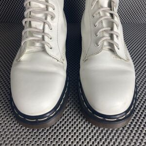 Dr Martens Combat Boots Mens 8 White Leather Lace Up Ankle Boots Made In England