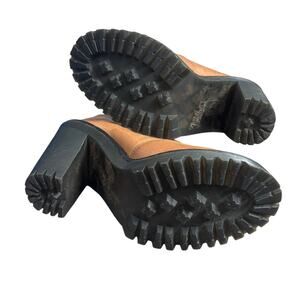 Step out in style with these Dr. Martens Cordelia slip-on shoes! These stylish shoes feature a tan brown leather upper and a comfortable gusset design. The sturdy lug sole provides excellent traction, and the 3.5" platform heel adds a touch of height. Pre-owned but in great condition with minimal signs of wear, these shoes are ready for their next adventure. Don't miss out on this fashionable and functional footwear!