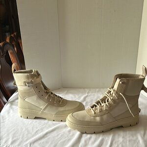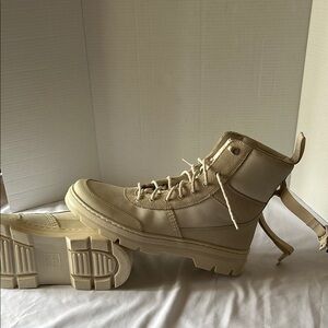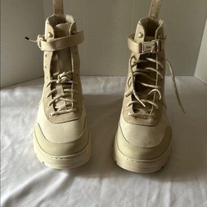Dr. Martens Cream Boots with Chunky Sole and Lace-Up Design
