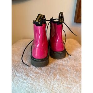 Unleash vibrant energy with these Dr. Martens Delaney boots, a splash of bold pink ready to empower your child's every step. Crafted for durability and style, these ankle boots feature the iconic Dr. Martens sole and a convenient side zip for easy wear. The classic lace-up design adds a touch of edgy coolness, while the eye-catching color makes a statement. Designed with a comfortable fit to support active feet during playground adventures or casual outings, these boots seamlessly blend fashion and function. Let your little one rock these statement boots at school events, weekend playdates, or family gatherings, where their confident personality can truly shine.