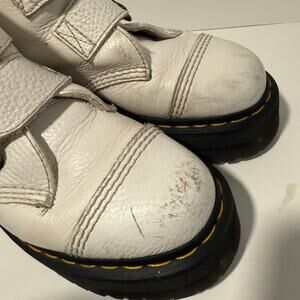 Dr. Martens Devon Flower Boots Platform Ankle White Leather Groovy Buckle 8