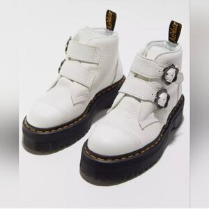 Dr. Martens Devon Flower Quad Platform Boots In White Size 9