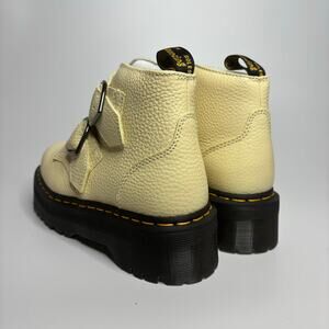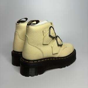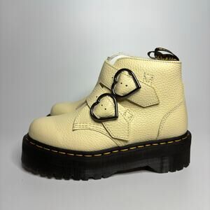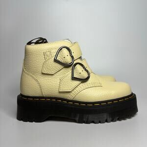 Dr. Martens Devon Heart Leather Platform Boots in Toile Cream Milled Nappa