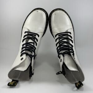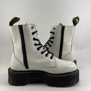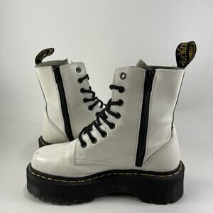 Dr Martens Doc Jadon Platform Quad Boots Womens Size 6 White Leather 8-Eye