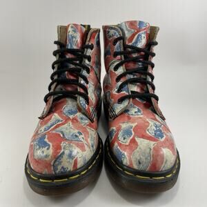 Dr Martens Docs Vintage 8-Eye Boots Womens Size 4 UK, 6 US Red Boots Blue Fish