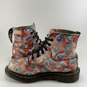 Dr Martens Docs Vtg Boots Womens Size 4 UK, 6 US Red Blue Fish Rare England