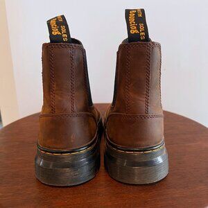 Dr. Martens Embury Leather Chelsea boot, brown leather with yellow stitching. Some scuffs on toes and sides. Worn less than 10 times.