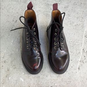 Check out the pictures. These boots themselves are in good condition, but as you see the right toe has some discoloration (I have had right boot professionally stained)also the inside tongue of the left shoe.