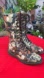 #vintage #retro #90s #Y2K #retro #floral #fall #tall #14eye #laceup #zippers #boots #cery #triumph #pointedtoe #lotty #oldschool #rare #deadstock #docs #flowers #womens #combat #moto #riding #neutral #colors #brown #tan #black #beige #orange #unique
