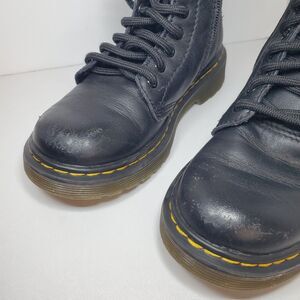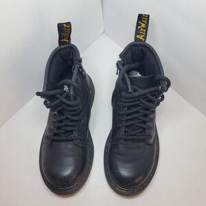 Dr. Martens Girls/Kids Black Leather Lace-Up Ankle Combat Boots Size 12 Zip Side
