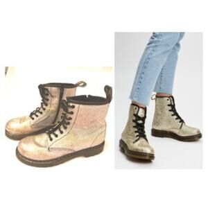 Dr. Martens Gold Sparkle Chunky Combat Boots Sz 5L Fairy Barbiecore GLAM Goth