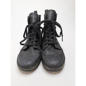 Dr. Martens Hackney Black Glitter Leather Combat Boots Women's US 5