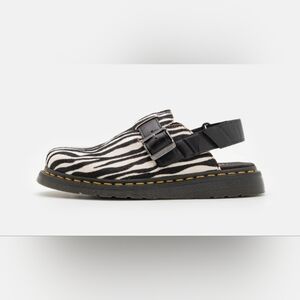 Dr. Martens JORGE II UNISEX dyed bovine calf hair zebra print black white platform clog mules size US 10 men / 11 ladies brand new