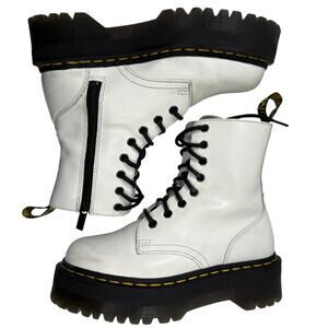 Dr Martens Jadon Chunky Platform Combat Boots Leather White Smooth Women Size 6