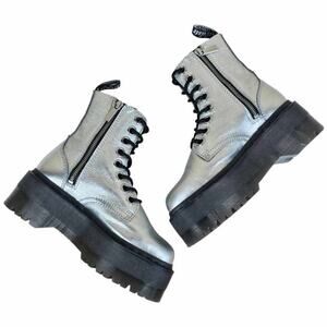 Dr. Martens Jadon MAX Platform Boots Metallic Silver Pebbled Leather Size 6 RARE