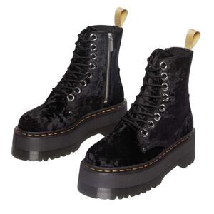 Step into luxury with the Women's Jadon Max Crushed Velvet Boots from Dr. Martens. These boots not only elevate your style with their lush crushed velvet finish but also bring an edgy vibe with the iconic chunky sole, making them a fashion-forward statement for any occasion.