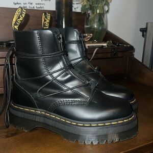 Dr Martens Jarrick I| Black Smooth Leather Lace up & Zipper Platform Boots New