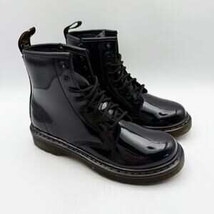 Dr. Martens Junior 1460 Lace Up Boots Girls 3 Boys 2 Black Patent Leather NIB