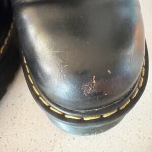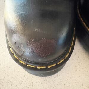 They have wear on the front toe that is pretty bad. I did try to use shoe polish. It helped a little bit but it’s just a cover up. Not completely repaired. Has cracking to the leather on one shoe.