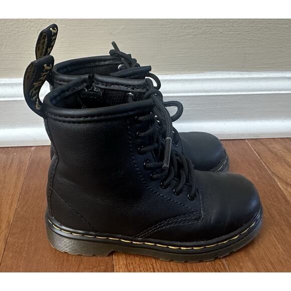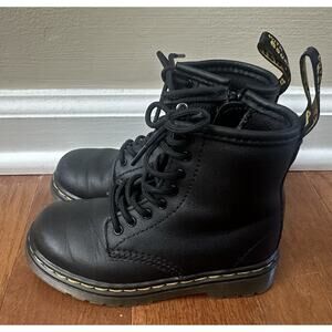 Dr Martens Kids Toddler Size 8 Black Leather Combat Boots Zip Doc Junior 1460