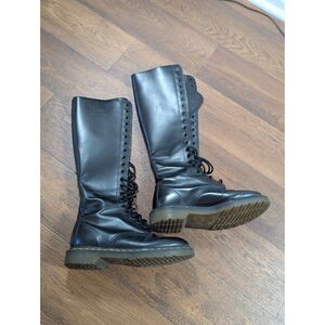 Dr Martens Knee High 20-Eye Leather Boots Black Women Tall Lace Up USA 6