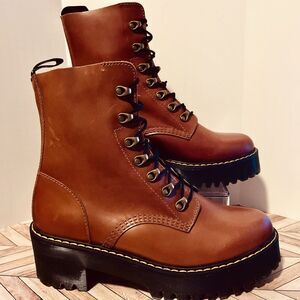 Dr Martens Leona Farrier Tan Leather Heeled Women 11 Boots Lug Platform