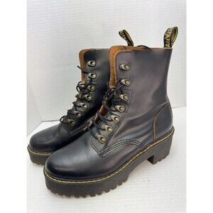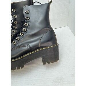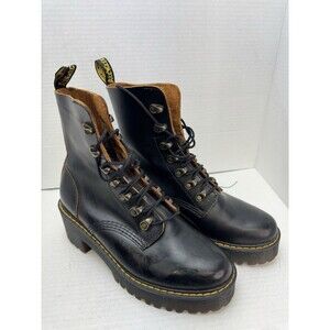 Dr. Martens Leona Womens Combat Boots Sz 8 Black Leather Platform Chunky Heel