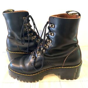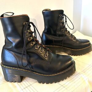 Dr. Martens Leona Women's Vintage Smooth Black Leather Heeled Boots - Size 9