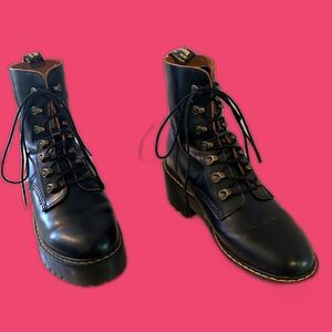 Leona Women's Vintage Smooth Black Leather Heeled Boots - Size 9. Like new! Platform height: 1 1/8 in; Heel height: 2 1/4 in