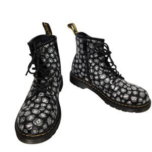 Dr Martens Leopard Hydro Combat Boot Black Skulls Metallic Leather Ankle Girls 4